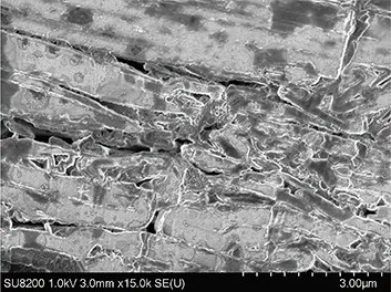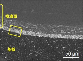 即使硬度和成分不同的多層結(jié)構(gòu)材料,也可以制備斷面。 樣品:保險杠涂膜 |