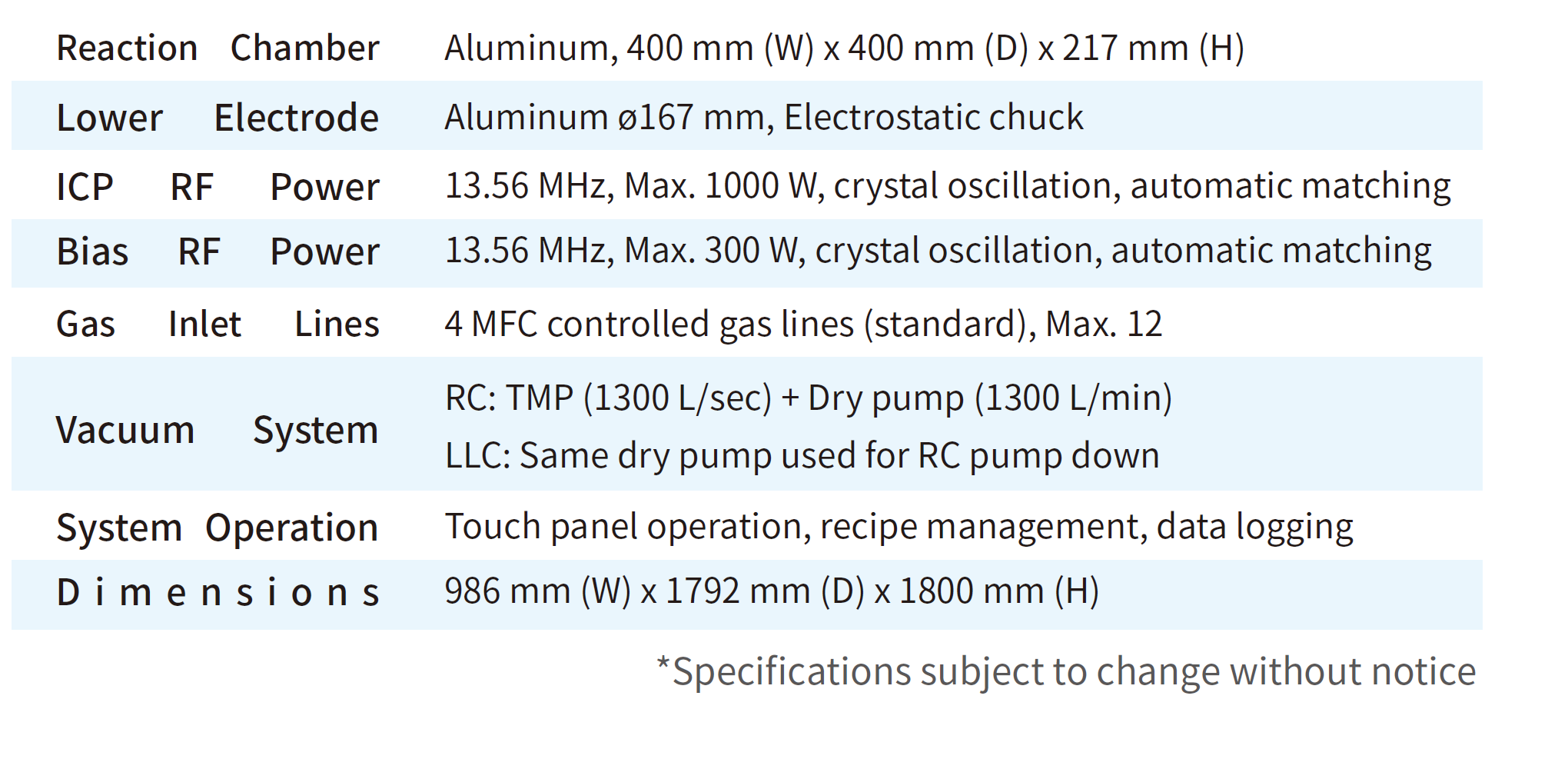 The RIE-400iP是一種高性能電感耦合等離子體(ICP)蝕刻系統,它使用高密度等離子體來執行光電器件和電子元件所需的化合物半導體蝕刻。