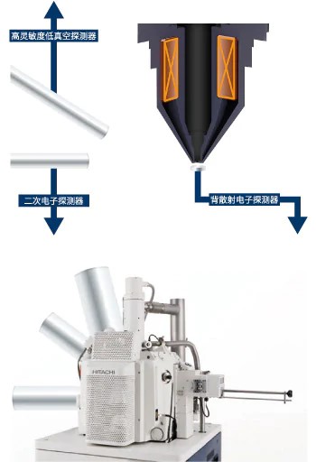 ■ 可滿足多種觀察需求的探測器 ● 搭載高靈敏度UVD*,支持CL觀察 ● 高靈敏度半導體式背散射電子探測器,切換成分/凹凸等多種圖像